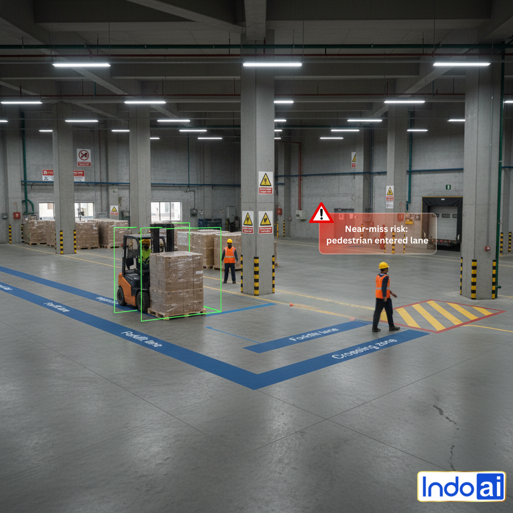 - Forklift–pedestrian near-miss detection at crossings and blind turns