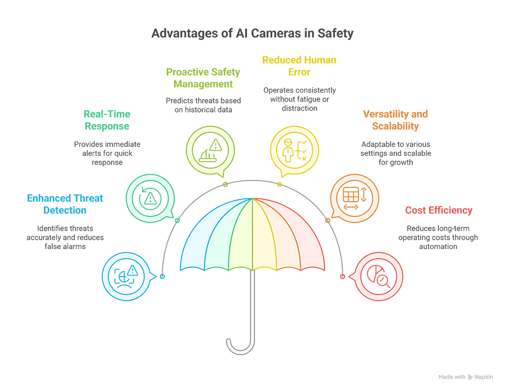 The value of AI cameras in enhancing safety cannot be overstated. They offer several benefits that set them apart from traditional surveillance systems. Here are the key advantages: